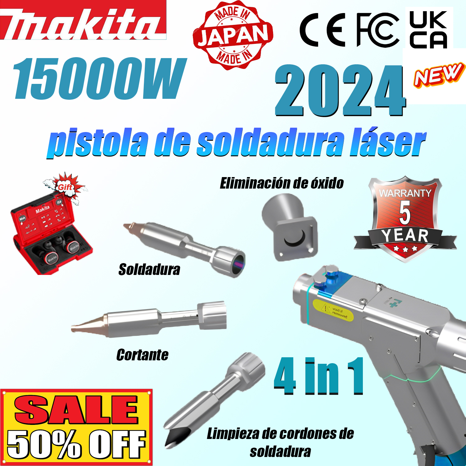 Pistola de soldar láser Makita15000W 4 en 1 (soldadura + limpieza + corte + eliminación de óxido)